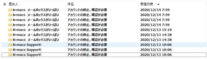 2020年12月13日以降、一部のお客様に下記のような内容のメールが届いたとの報告がされています。 当社で、このようなメールをお客様に配信している事実はございません。 迷惑メールですので、本文中のURLはクリックせず、速やかにメールの削除をお願いいたします。 |
